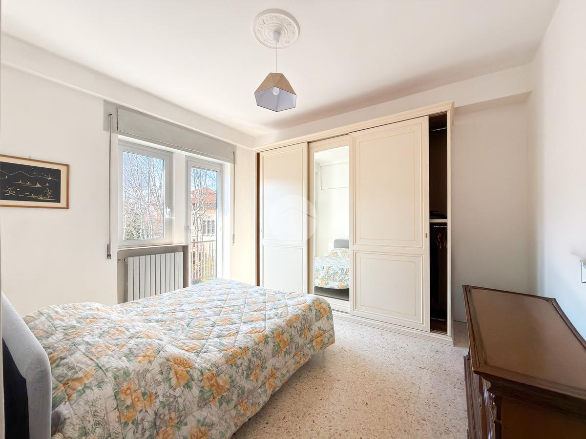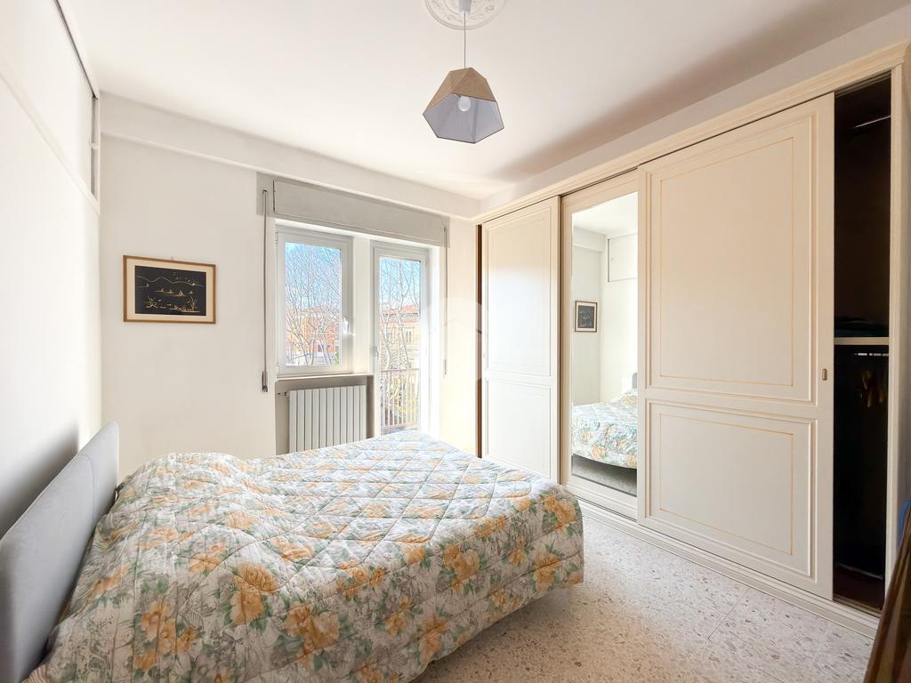 La zona notte comprende due camere da letto, di cui una con accesso al balcone, un bagno finestrato con vasca e un comodo ripostiglio.
