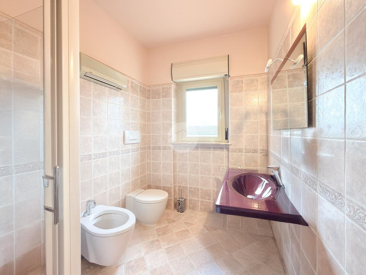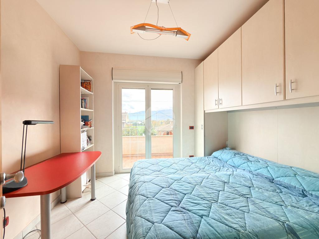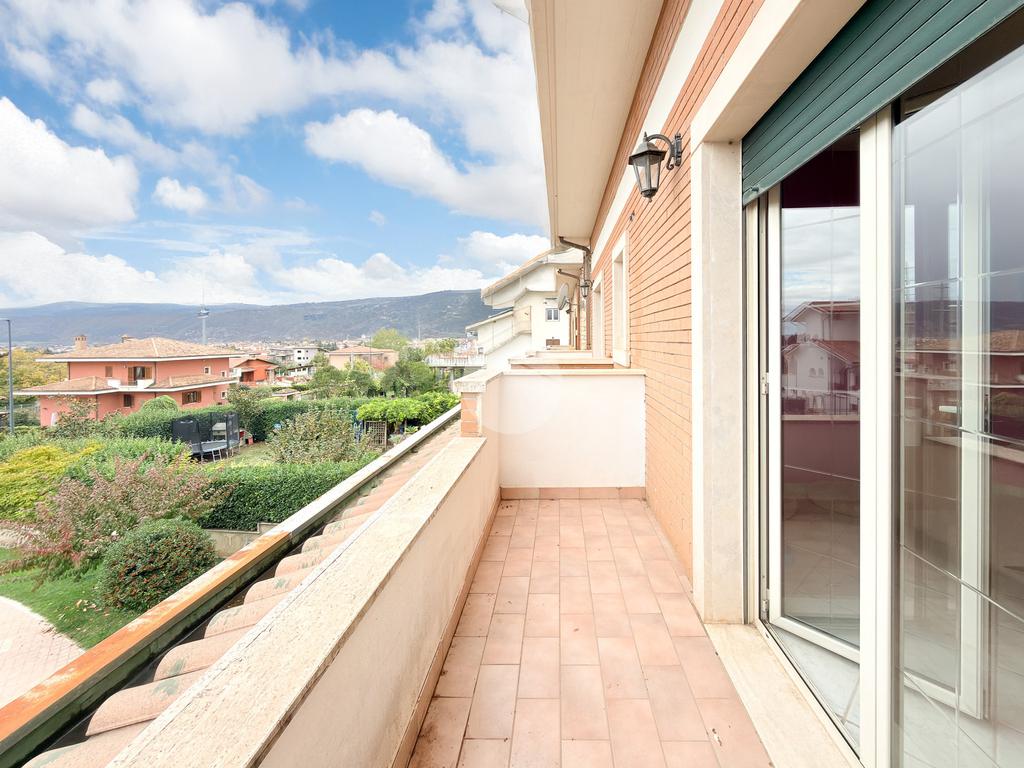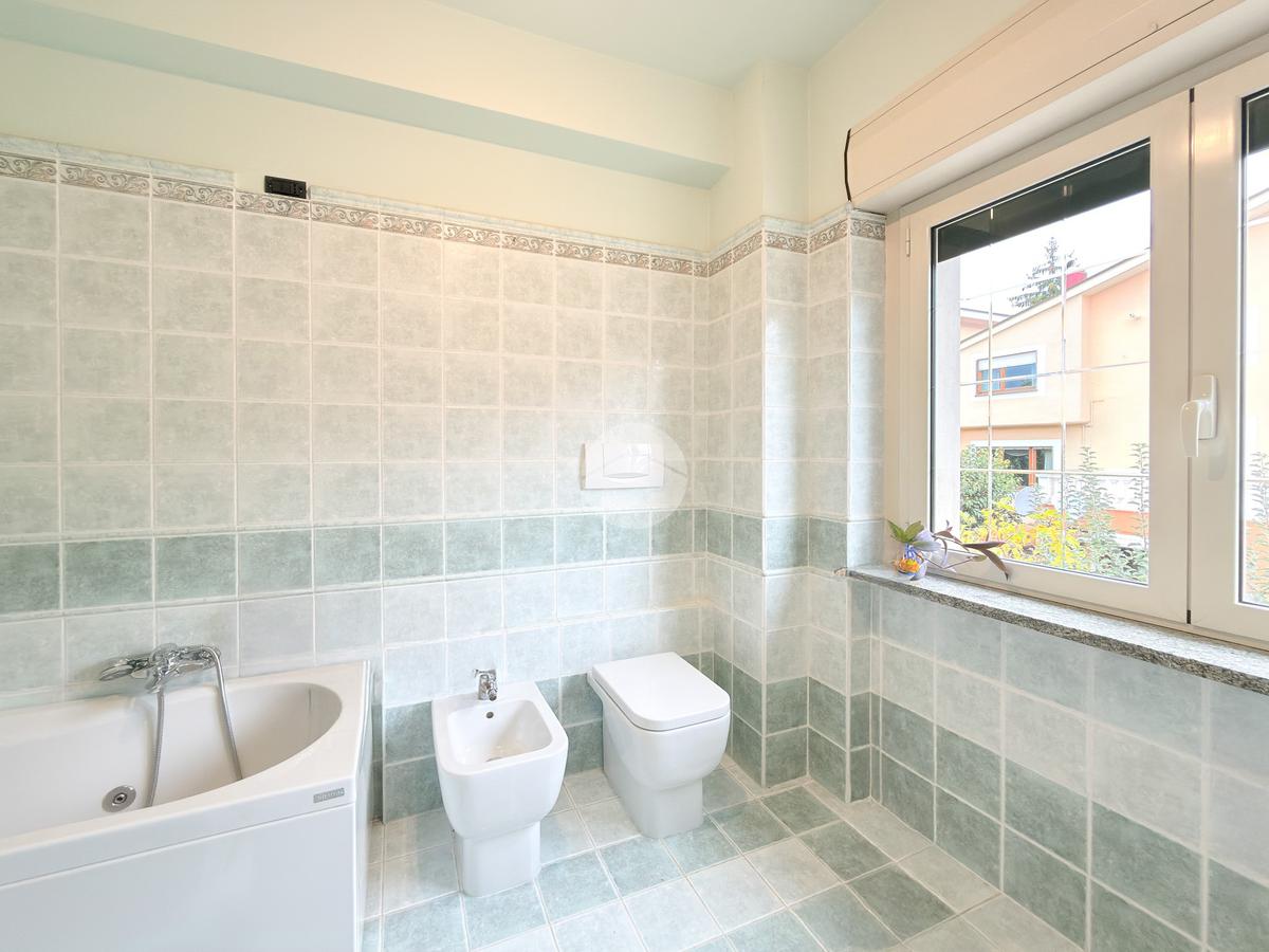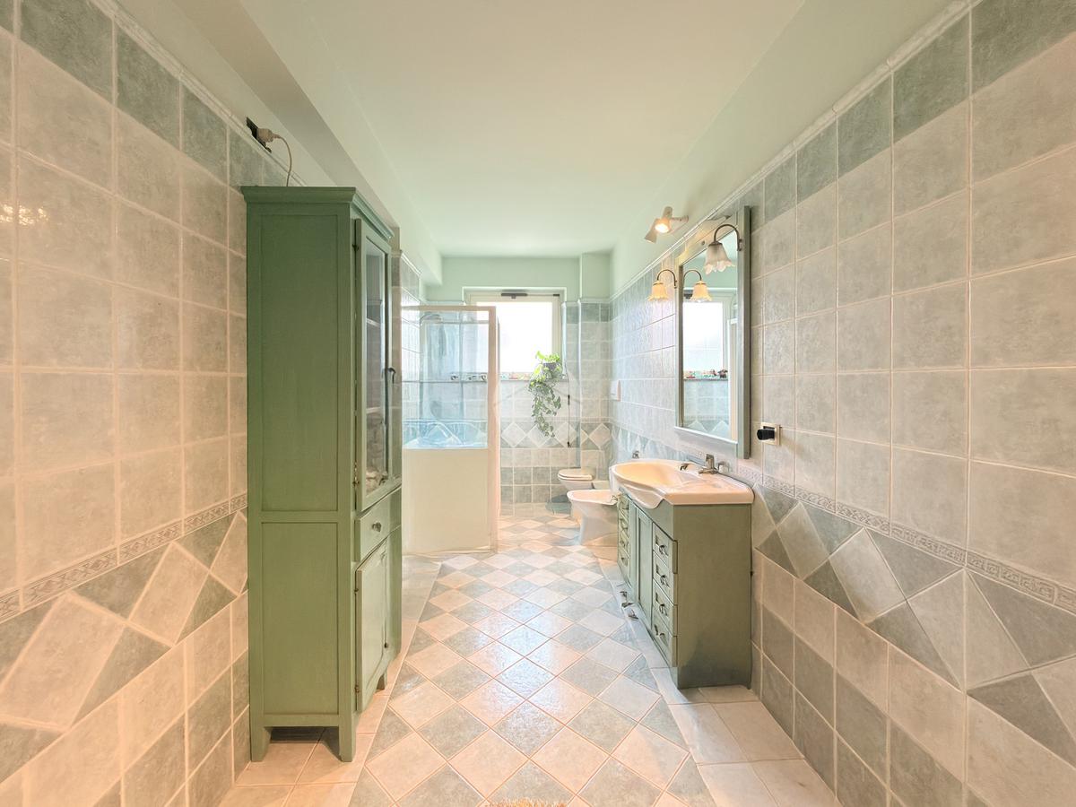 Il primo piano ospita la zona notte con tre camere da letto, ognuna con balcone privato, e doppi servizi, di cui uno en suite con vasca. Completa il livello un secondo bagno finestrato con doccia.