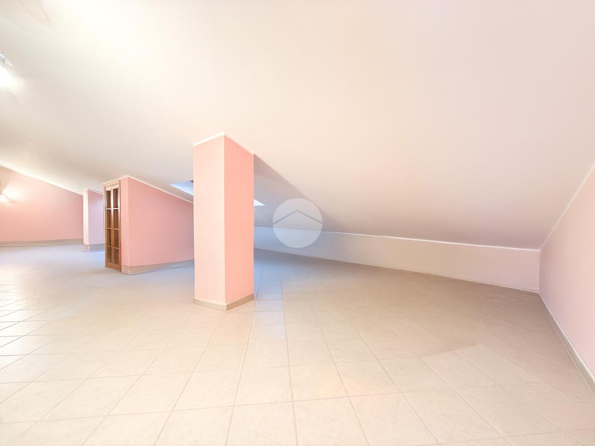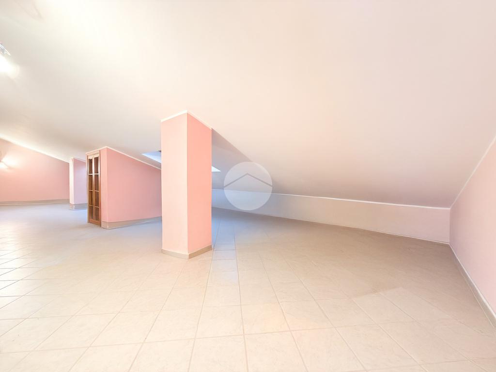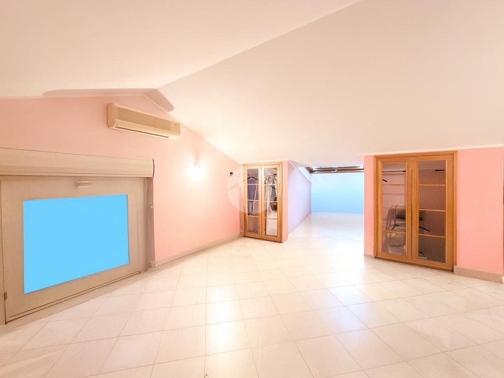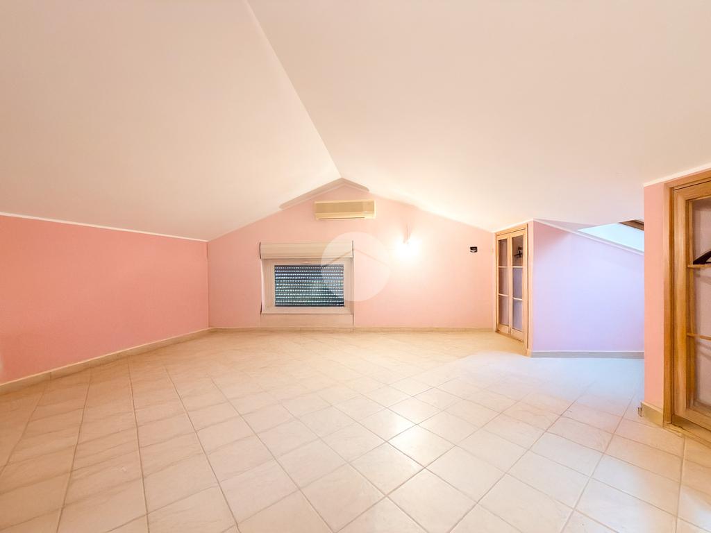 Al secondo piano troviamo un suggestivo open space mansardato, facilmente divisibile, arricchito da armadi a muro adibiti a cabina armadio e un bagno con vasca.