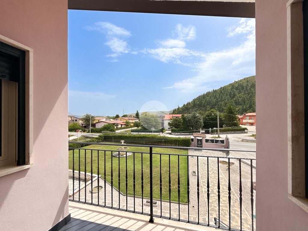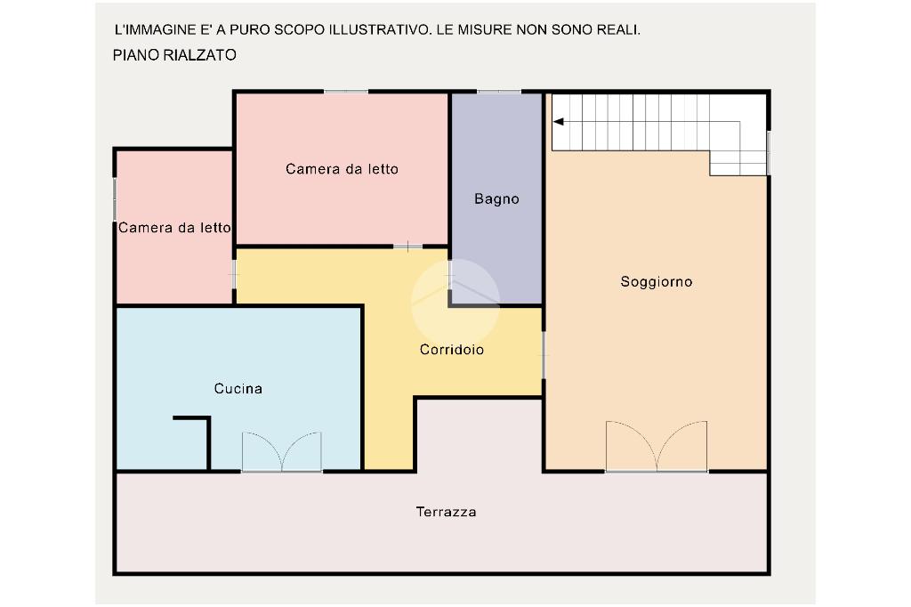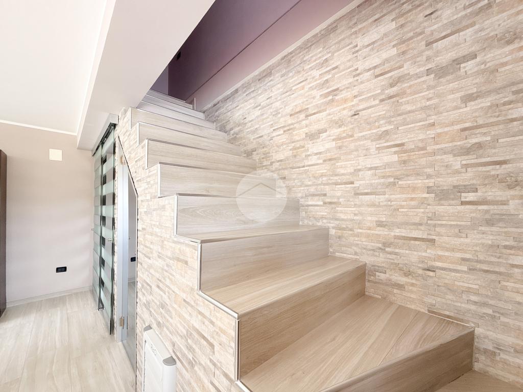 Al piano rialzato, raggiungibile tramite una scenografica scalinata esterna, troviamo l’ingresso che conduce ad un ampio soggiorno open space con zona living, cucina abitabile, disimpegno, due camere da letto e un bagno con doccia e finestra.