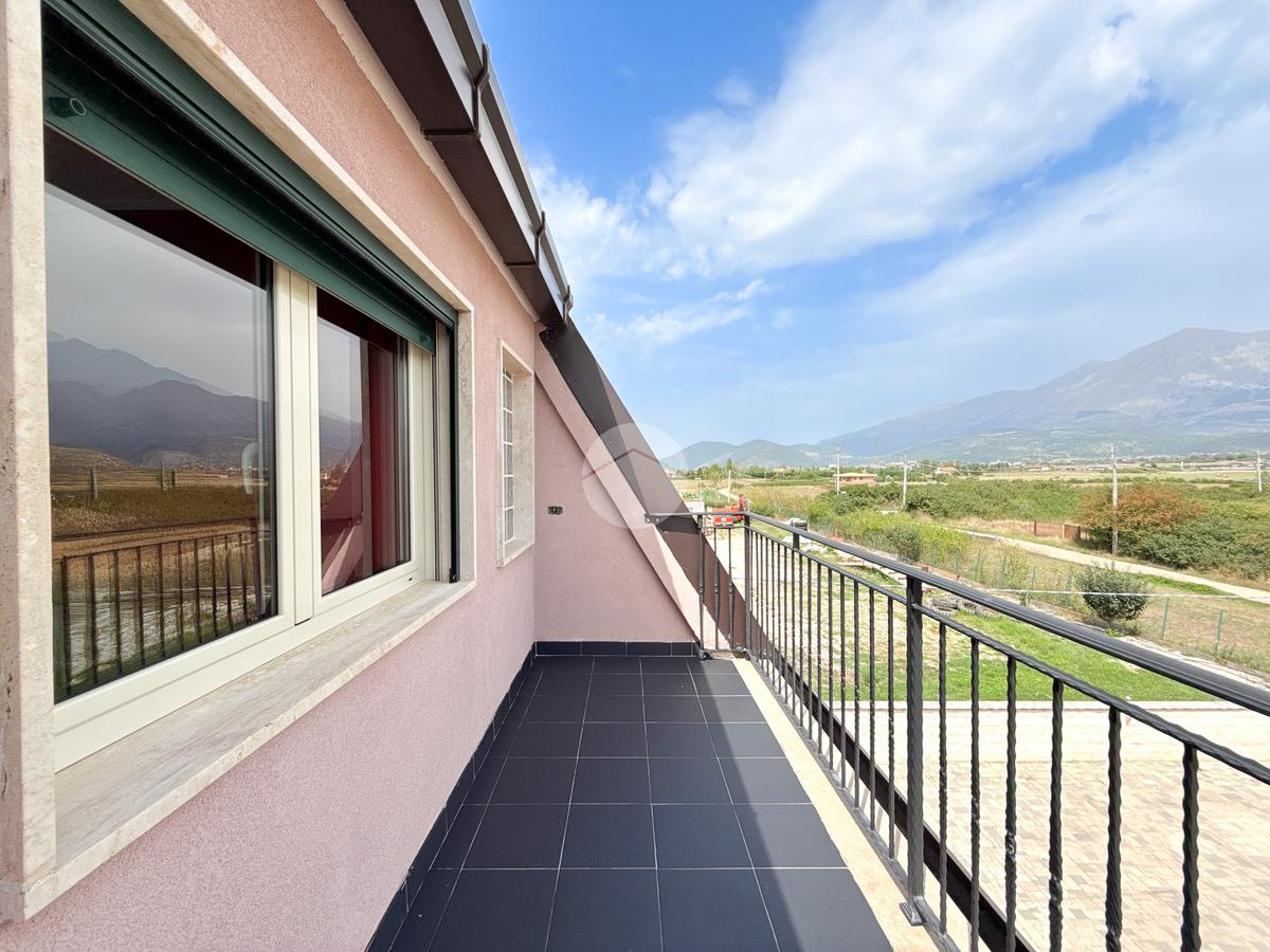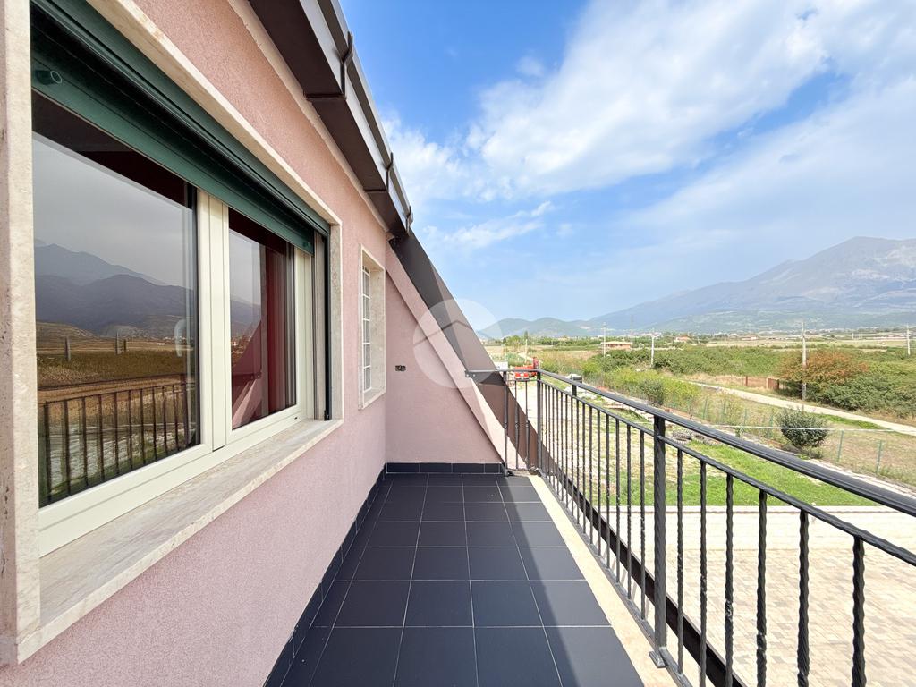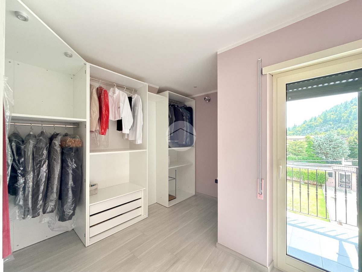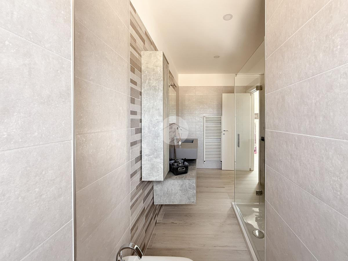 Una scala interna collega il piano superiore composto da due camere da letto, un bagno finestrato con doccia, un locale zona lavanderia e una cabina armadio con accesso a balconi panoramici che offrono una splendida vista.